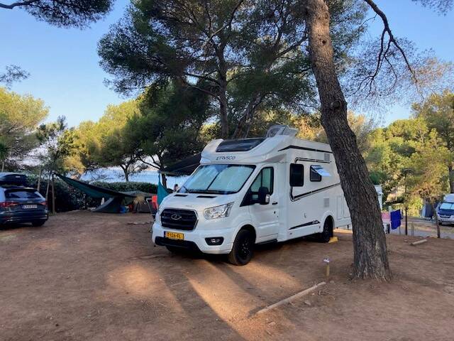 In de middag komen we aan op de camping. Het is nog steeds heel erg heet. Zoals op elke plaats regelen Tim en ik de camper en de rest en duiken de kinderen meteen het water in. Op deze camping hebben we echt een top plek op nog geen 200 meter van het strand. Het is geen zandstrand maar het strand bestaat uit grote en kleinere kiezels. Waterschoenen zijn een must. Als de camper staat duiken we allemaal de zee in met snorkel en duikbril. Wat een prachtig gezicht! Heel veel vissen die je normaal in de dierentuin ziet met prachtige kleuren en vormen. Ook zien we een behoorlijk grote octopus. Dat is echt heel bijzonder.
