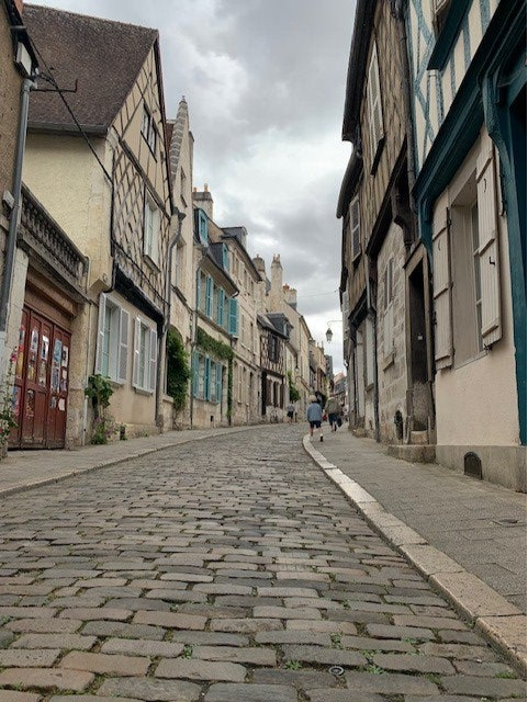 We pakken de camper weer in. Althans, we doen de ramen dicht en sluiten de garage en andere deuren en rijden weg. Een leuke route langs zonnebloemvelden van zo’n 2 uur. We hebben een hele simpele, maar zeer effectieve camping bij het centrum van Bourges gevonden. Na weken van hitte en daardoor loomheid en weinig energie zien we uit naar deze “verademing”. We parkeren de camper eind van de middag. Halen lange broeken, truien en vesten uit de voorraad en vertrekken per fiets naar het centrum van Bourges. Heerlijk!!!!! Fietsend de stad in!!!! Het is maar een kort tripje door een park, maar zo fijn weer te bewegen! We drinken wat, wandelen de stad door en treffen een wijnbar met tapas. Dat is nou eens leuk. Menetou-Salon en Sancerre staan op de kaart, en die moeten we natuurlijk proeven. Een heerlijk samenzijn met wijn en hapjes is het gevolg. Hierna schuiven we nog aan een andere tafel bij de koekjes en chocolade fabriek Mercier, voor heerlijke cocktails en tevreden fietsen we om half 9 terug naar de camping. Tevreden vallen we allemaal in slaap. Morgen verder naar Bretagne.