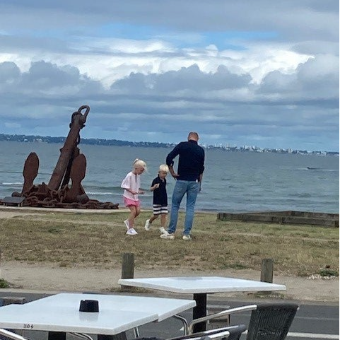 We fietsen verder langs de kust en treffen een leuke bistro met op het menu mosselen. Dat moet het worden! Ook de kinderen doen mee! Ze kiezen het kindermenu met een klein pannetje mosselen met frietjes. Vol goede moed beginnen ze er aan, maar na een paar mosselen blijkt het toch niet zo goed te bevallen. De frietjes gaan op en uiteindelijk gaan ze schelpen zoeken op het strand.