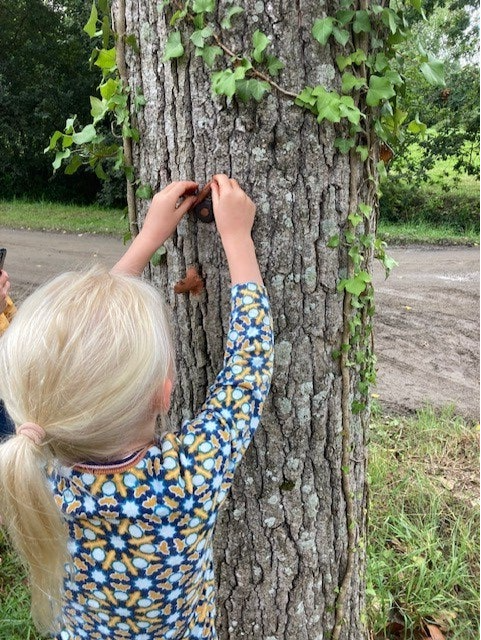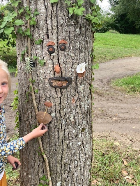 We lopen na deze affaire en het lekkere eten terug naar de camper en gaan slapen in een schoon en fris bed! Zondagochtend mogen de kindjes om 10.00uur naar het restaurant om daar te beginnen met de Land Art activiteit. Knap van de kindjes want de begeleidster spreekt alleen Frans en Engels. Ze redden zich keurig met een beetje Engels, handen en voeten. Trots! Wat een leuk idee heeft ze bedacht: met klei gezichtjes op bomen plakken. Het resultaat is prachtig!
